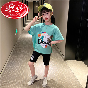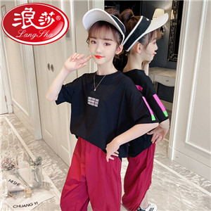 浪莎女童夏裝2021新款網(wǎng)紅洋氣兒童中大童短袖T恤女孩童裝夏季潮