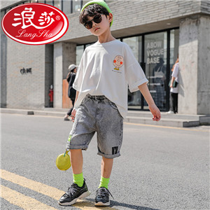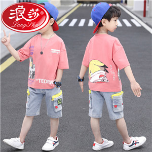 浪莎童裝兒童男童短袖套裝2021新款夏裝中大童兩件套寶寶卡通套裝