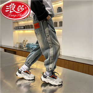 童裝男童洋氣邊扣牛仔長褲兒童春夏褲子2021春裝新款中大童韓版潮