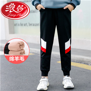 浪莎童裝男童羊毛外穿棉褲秋冬季加絨加厚中大童寶寶保暖運動褲子