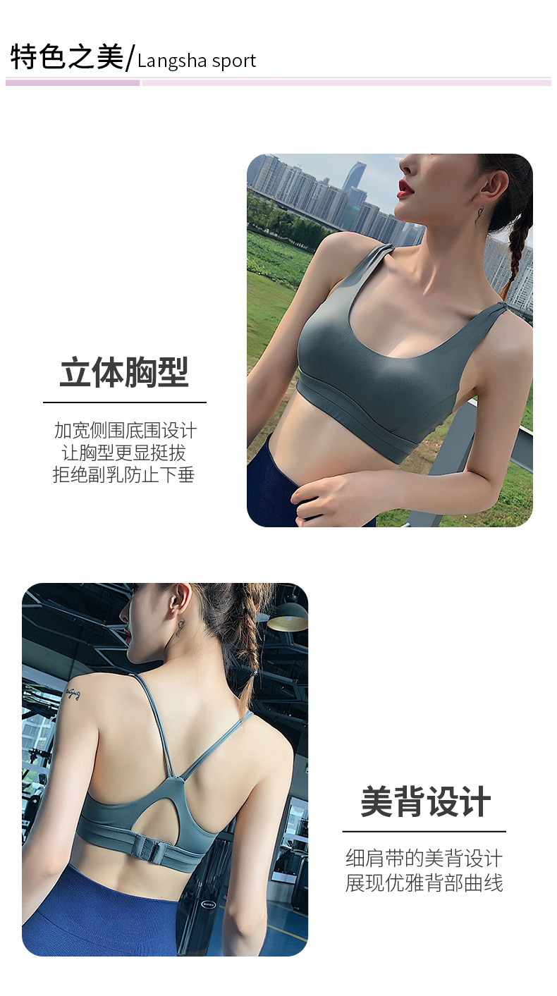 浪莎運動內衣女防震跑步聚攏定型搭扣瑜伽背心細肩帶美背健身文胸