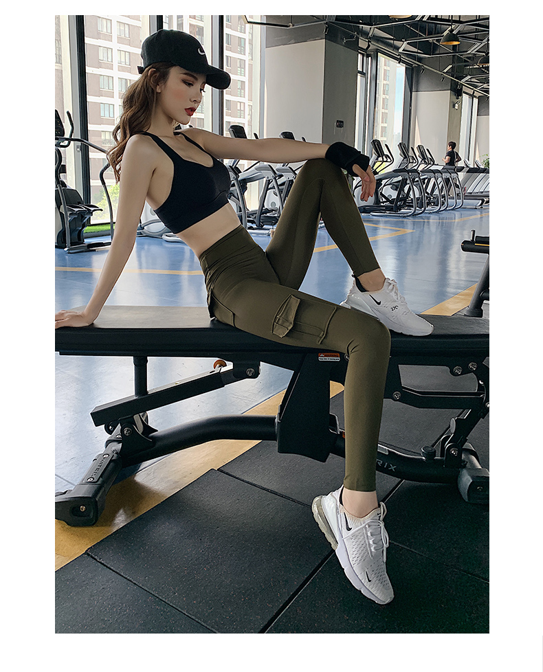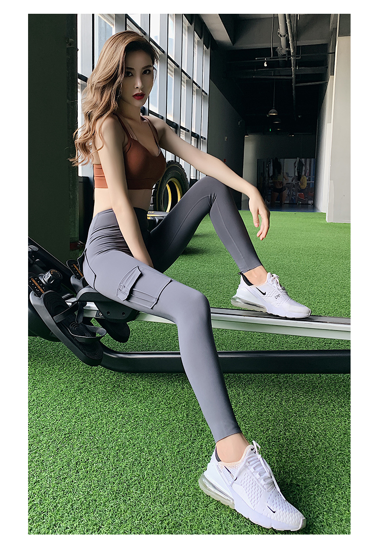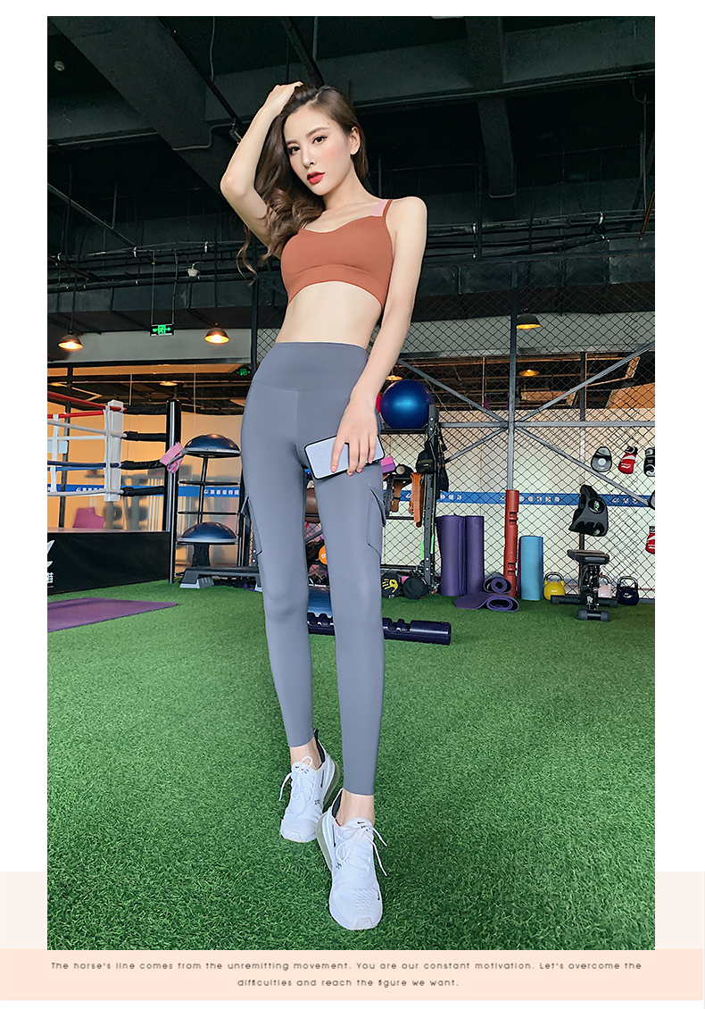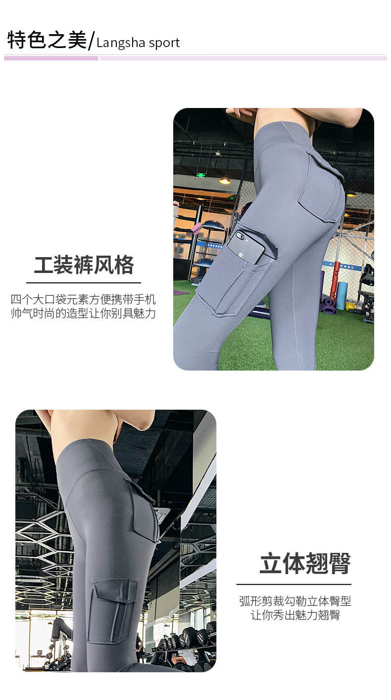浪莎蜜桃健身褲女彈力緊身速干跑步運(yùn)動褲提臀高腰收腹工裝瑜伽褲