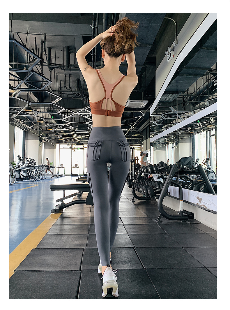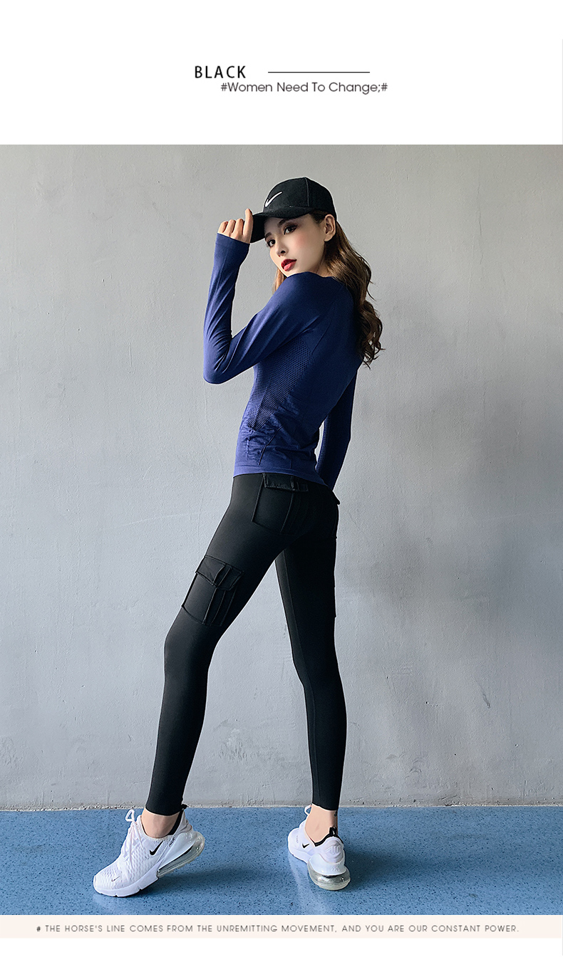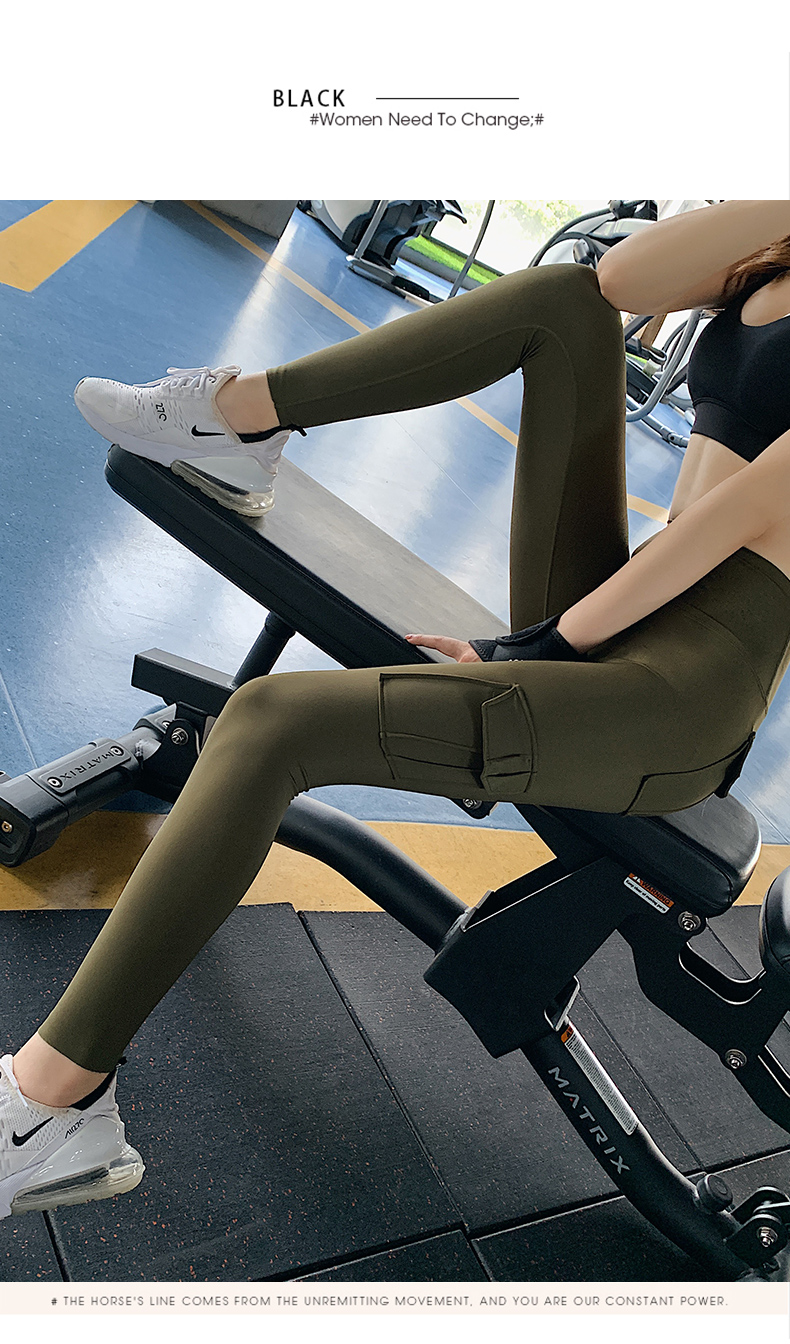 浪莎蜜桃健身褲女彈力緊身速干跑步運(yùn)動褲提臀高腰收腹工裝瑜伽褲