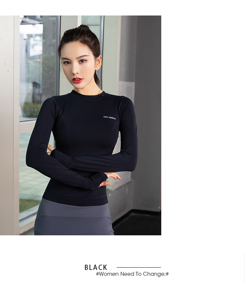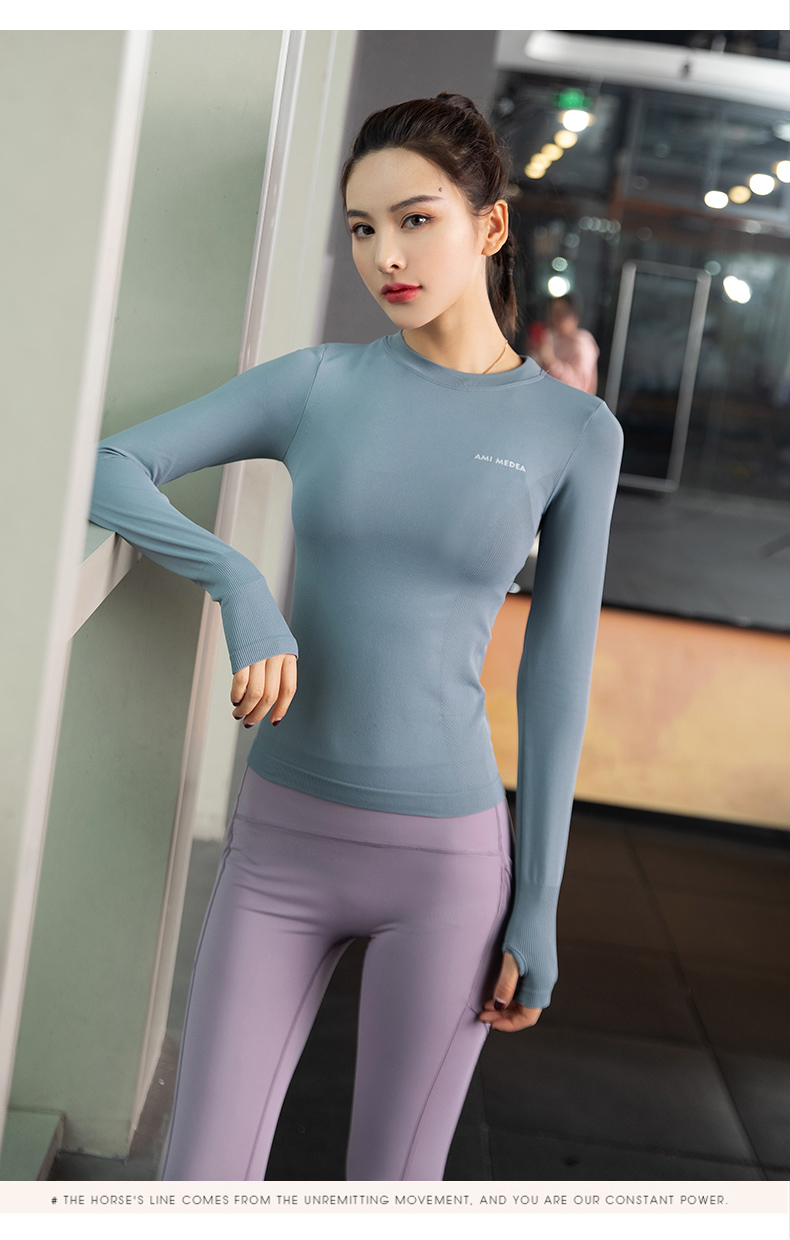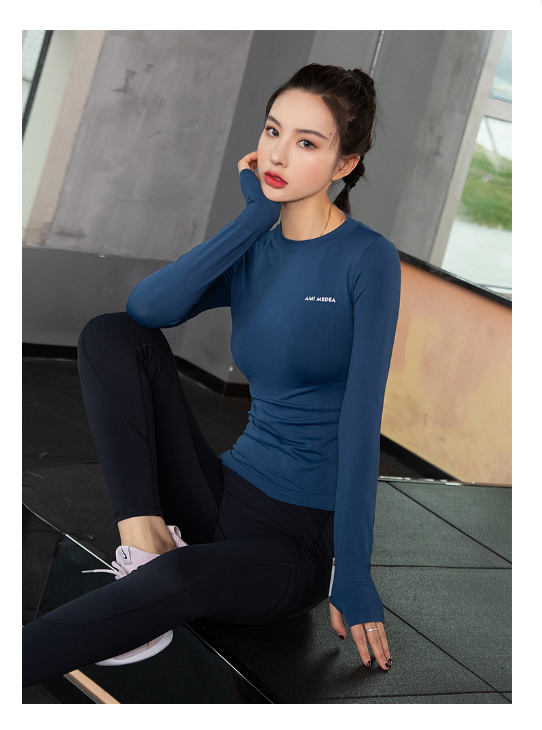 浪莎運動上衣女修身瑜伽服跑步秋冬吸汗緊身透氣速干新款健身長袖
