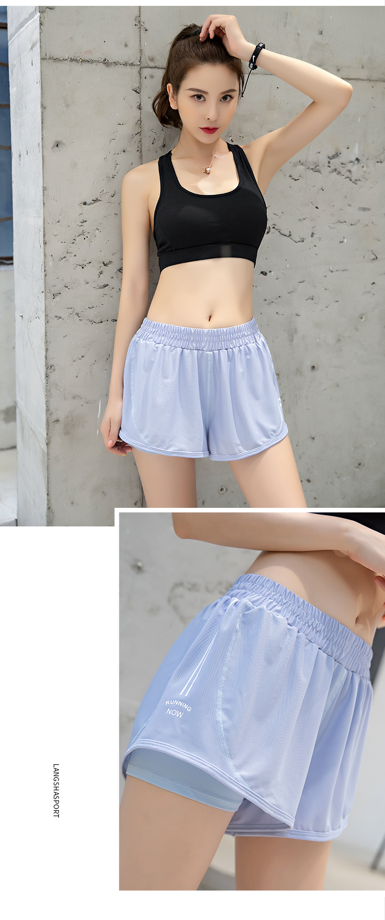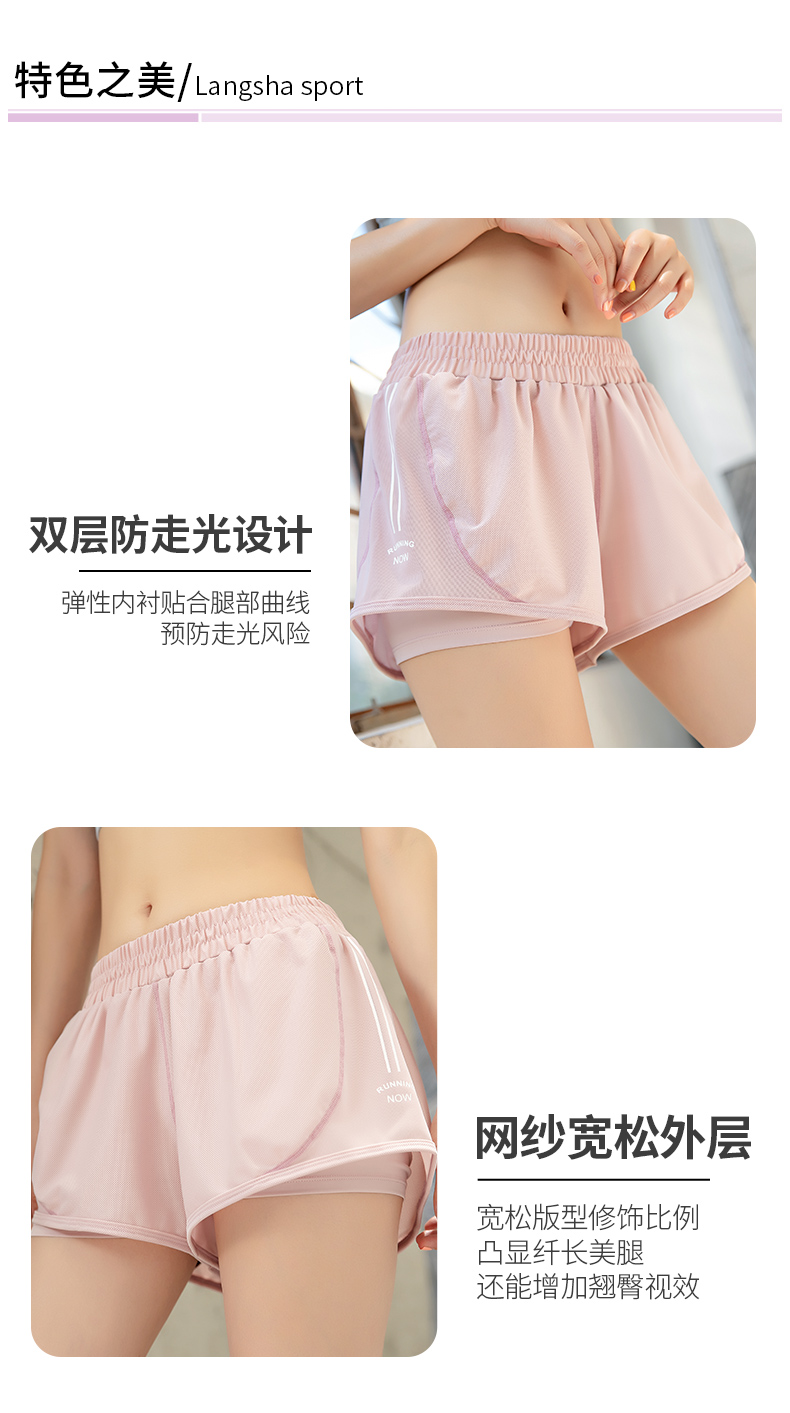 浪莎運(yùn)動短褲女薄款寬松速干翹臀跑步訓(xùn)練網(wǎng)紗瑜伽防走光健身短褲