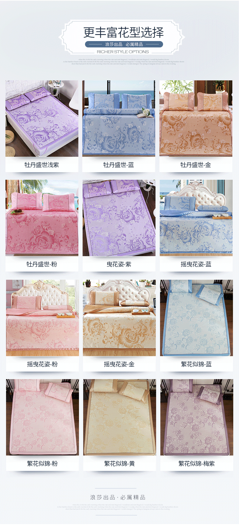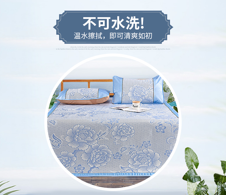 浪莎涼席冰絲席三件套1.8m床夏季1.5米折疊雙單人1.2學生宿舍席子