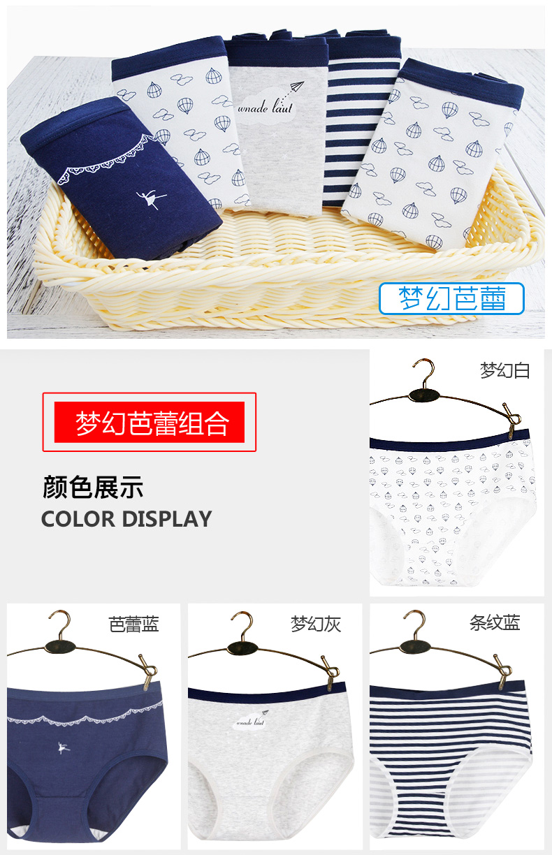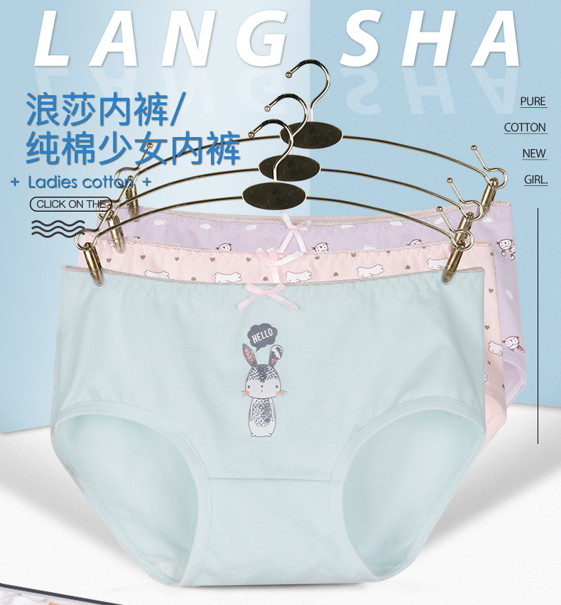 浪莎女士?jī)?nèi)褲女三角褲中腰春夏少女純棉面料透氣全棉日系女生褲衩